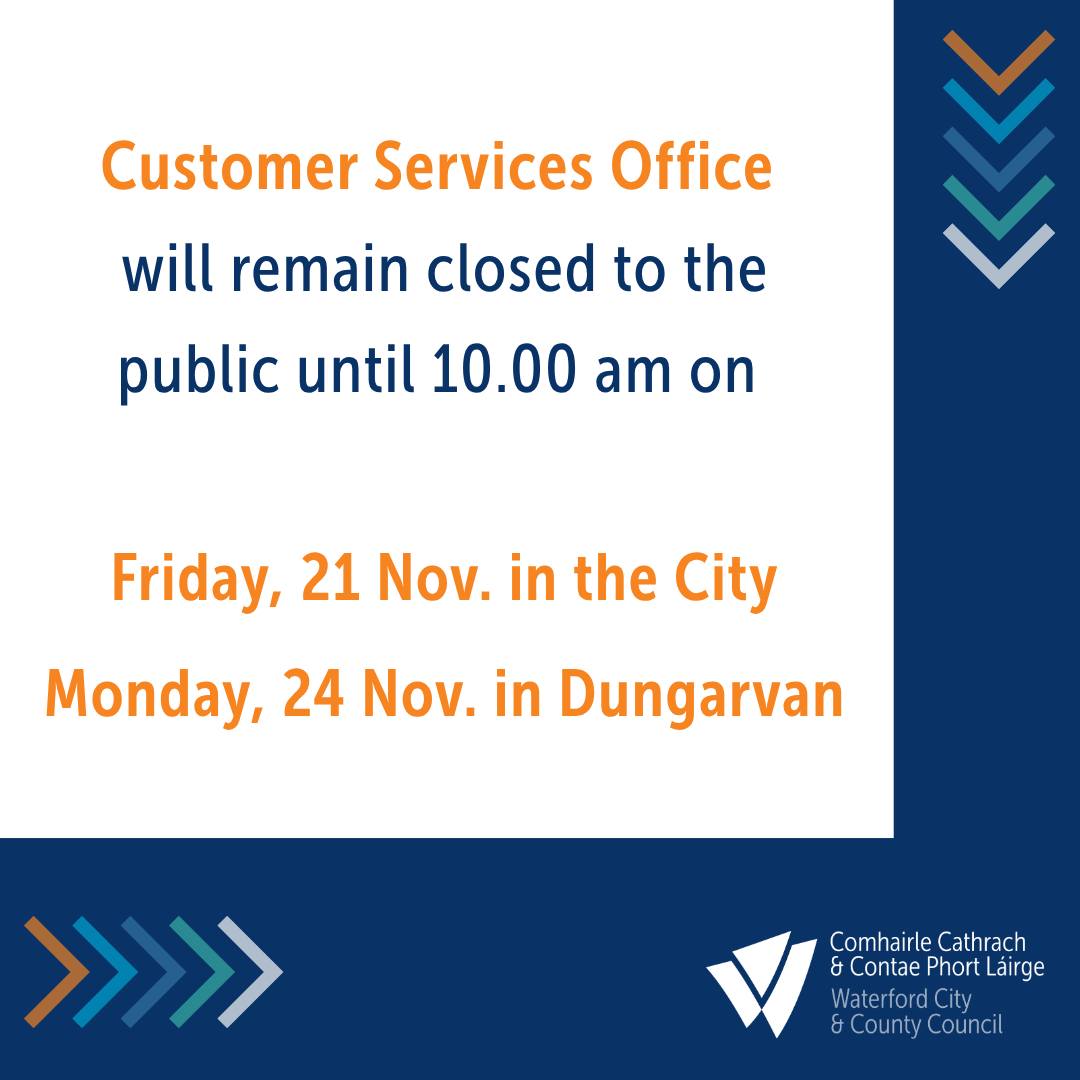 Please be advised that our Customer Services Office will remain closed to the public until 10.00am on